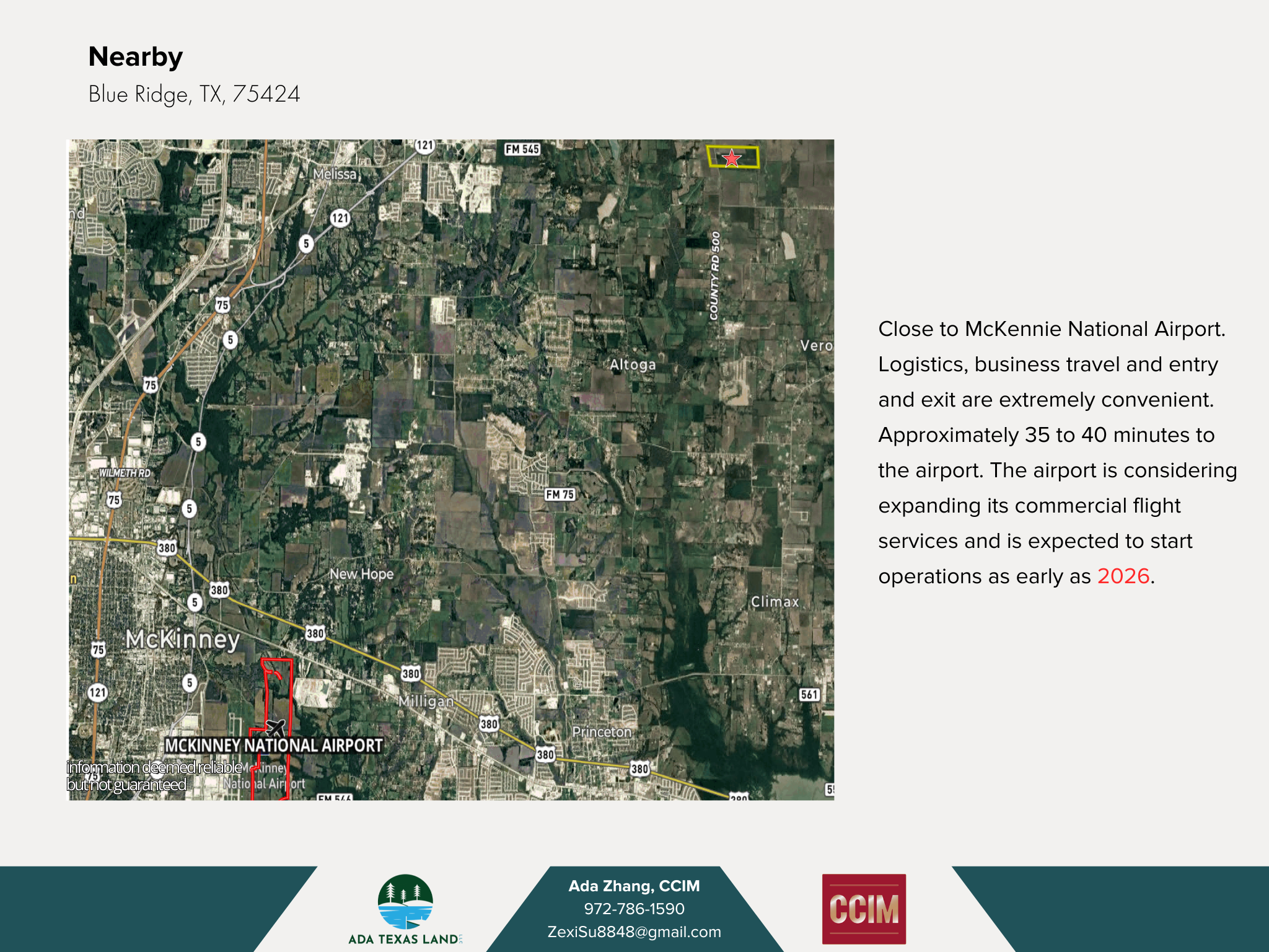 Located in Houston, TX, this 137.3 acres commercial acreage presents a rare opportunity for development in a high-visibility. Currently undeveloped, the property offers a blank slate for a wide range of commercial or mixed-use possibilities. There are many nearby schools and communities under development around, and the land has a high potential for appreciation. Close to McKennie National Airport. Logistics, business travel and entry and exit are extremely convenient. Approximately 35 to 40 minutes to the airport. The airport is considering expanding its commercial flight services and is expected to start operations as early as 2026. Total Size: 137.3 Acres Excellent Access: 4318 FT along County RD 832 1398 FT Along County RD 500 1363 FT along County RD 832 0.55 mile to FM 545